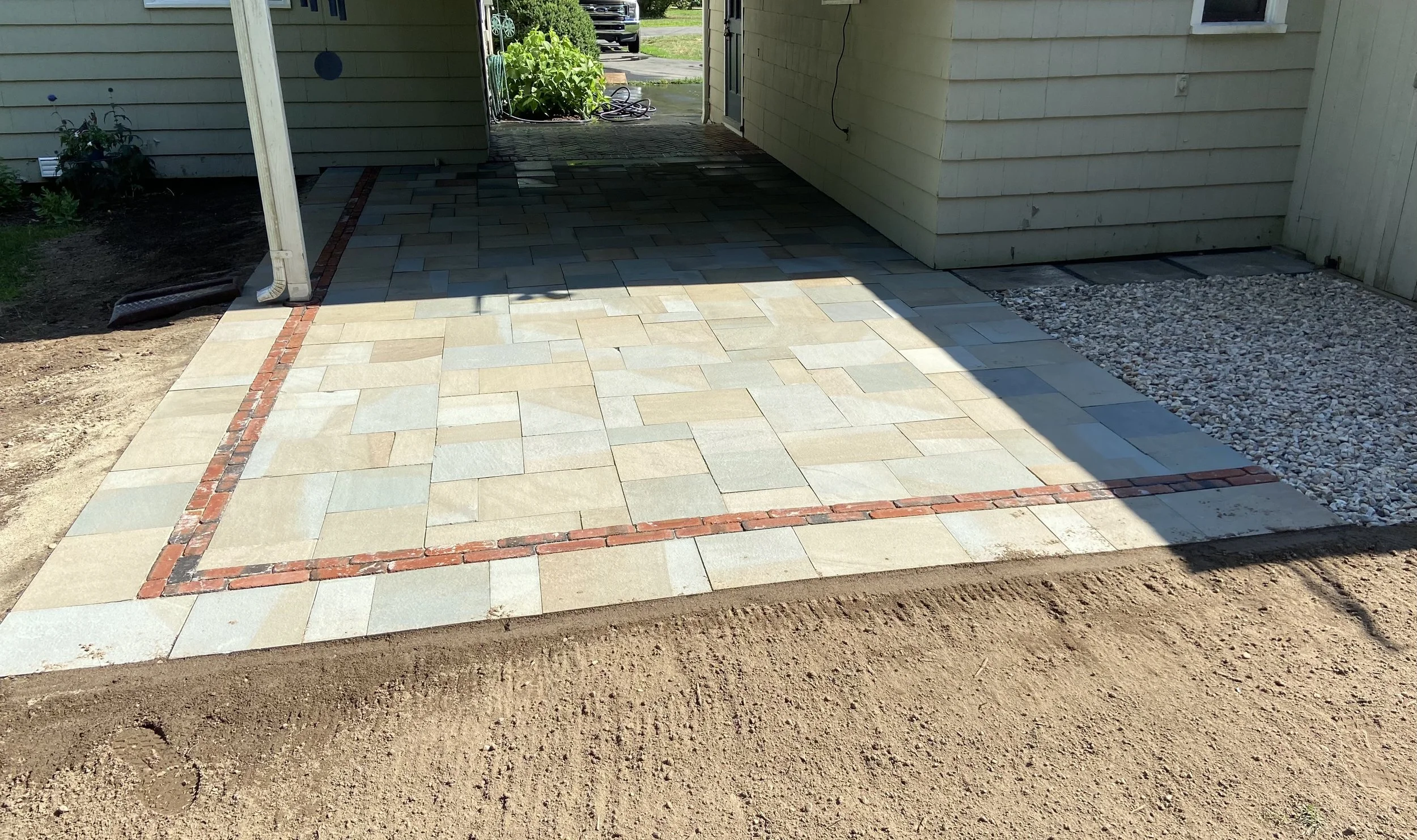 google defines a hardscape as, “the man-made features used in landscape architecture, e.g. paths or walls, as contrasted with vegetation.”