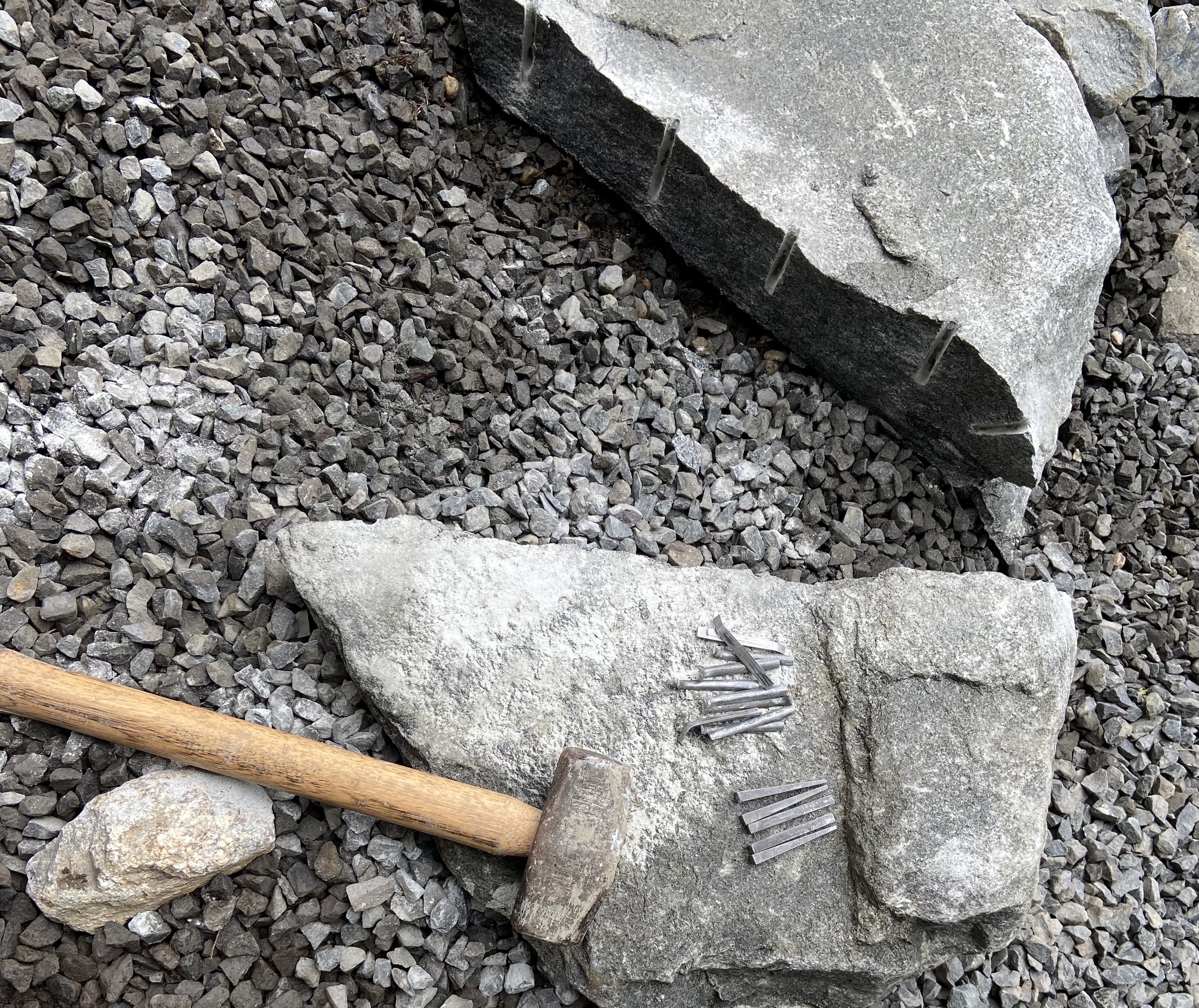 Cobblestones are made by splitting granite into rectangles, granite is an igneous rock, an extremely dense rock that has been used in construction since ancient times. Though cobblestones come split in a number of sizes the most common size is 4”x7”x10”most refer to this size as “jumbo”.